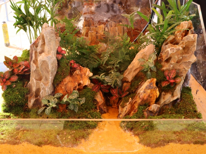 比赛现场同学们热情高涨,小组成员之间的配合也展现得淋漓尽致,相互协作、统一筹划。搭建构架、清洗底砂、放置沉木石块、植物点缀,一次次的思维碰撞,一次次的制作尝试,一个个美轮美奂的水族箱艺术作品逐渐成型。 经过一夜的沉淀澄清,所有参赛作品完美呈现在我们眼前。