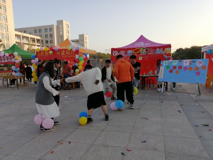 本次活动标语为:“绽放战役青春,坚定制度自信”。随着“你画我猜”和“心有灵犀”,“踩气球”,“手口不一”等心理拓展小游戏的开展同学们心情得到了放松和愉悦,并且参与的同学们纷纷领到了奖励的糖果。活动的开展体现了参与性和互动性的有机结合,使同学们的热情高涨,也在欢声笑语中拉近了彼此的距离。同时,心理部同学还准备了“心灵寄语”展示栏,让路过的同学们都能写下自己想要表达的心情和话语,留下属于自己的心灵路程。