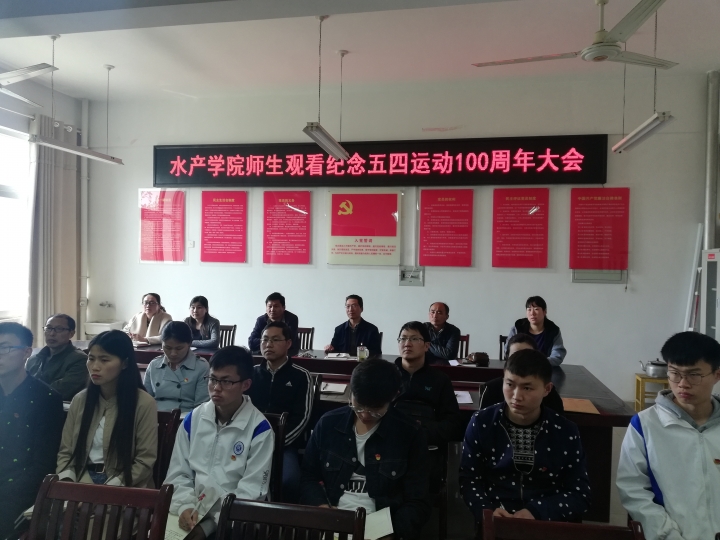 纪念五四运动100周年大会4月30日上午10时30分在人民大会堂举行。水产学院组织部分师生在党员活动室观看了大会直播。