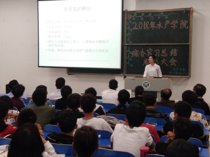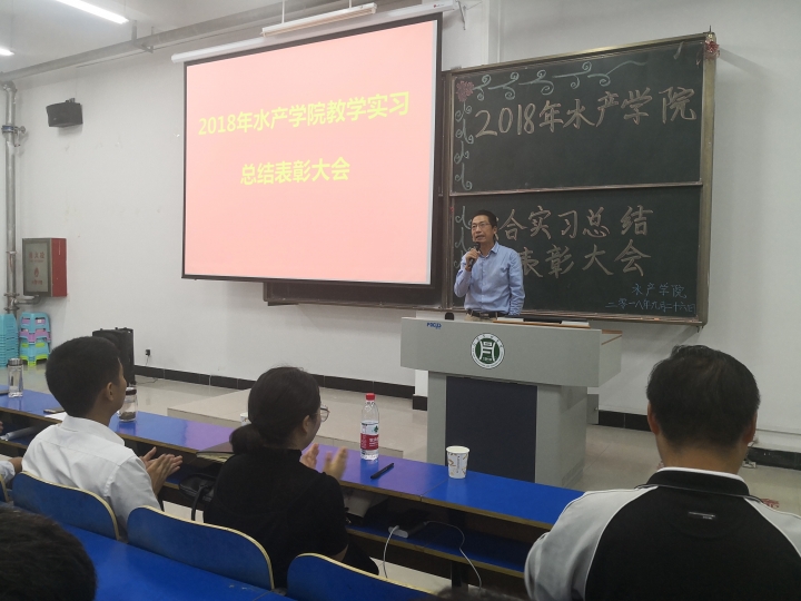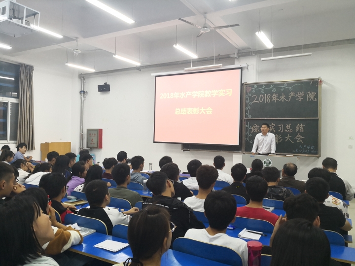 9月26日晚,水产学院在E201教室召开了2018年教学实习总结表彰大会。水产学院院长杨东辉、党总支书记郭旭升、副院长周本翔、通威股份华中一区总裁助理兼合肥通威市场部经理熊维峰、实习带队指导教师和2015级、2016级、2018级在校生参加了大会。会议由教学秘书伦峰主持。