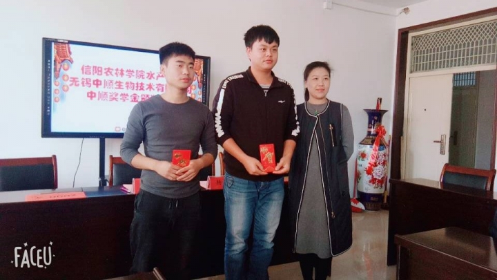 11月2日上午11点,水产学院与校企共建企业无锡中顺生物技术有限公司在实验楼2C313室举行了2018年“中顺奖学金”颁奖仪式。水产学院部分师生代表参加了颁奖仪式。