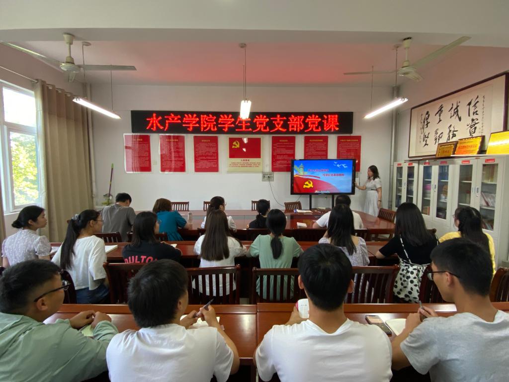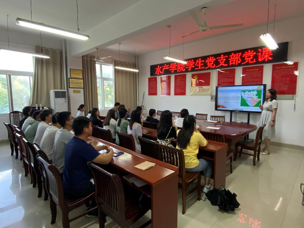 6月4日下午,水产学院党总支副书记黄光玲在2C330党员活动室为全院学生党员讲党史学习教育专题党课。