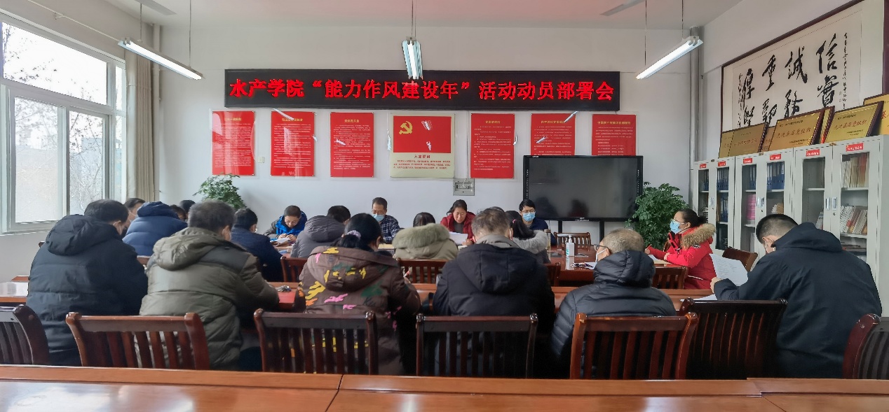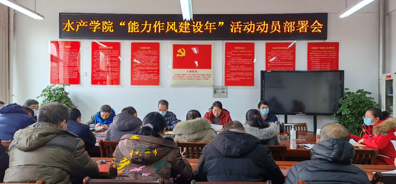 1月7日下午,水产学院在学院会议室2C330召开“能力作风建设年”活动动员部署会议。学院全体教职工参加了会议。会议由水产学院党总支书记、院长郭旭升同志主持。