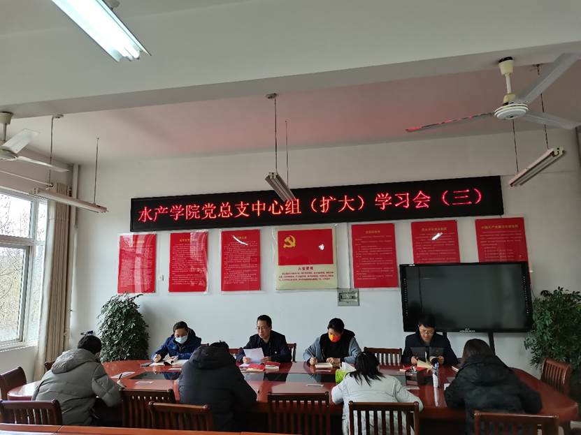 3月22日下午,水产学院党总支在2C330党员活动室召开2022年度第三次中心组(扩大)学习会。水产学院党总支班子成员及各支部书记参加了会议。会议由水产学院党总支书记、院长郭旭升同志主持。