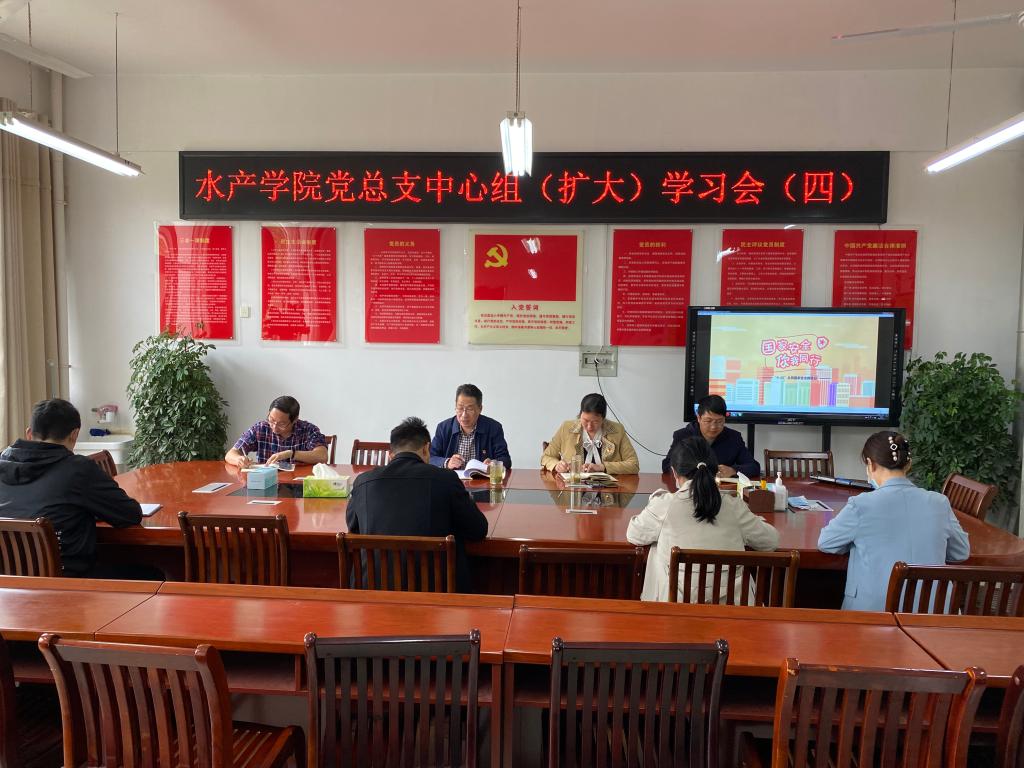 4月14日上午,水产学院党总支在2C330党员活动室召开2022年度第四次中心组(扩大)学习会,水产学院党总支班子成员及各支部书记参加了会议。会议由水产学院党总支书记、院长郭旭升同志主持。