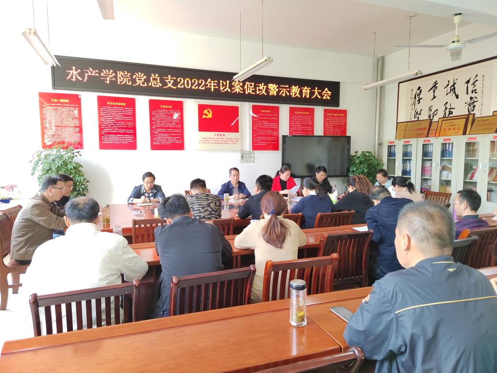 4月19日下午,水产学院党总支召开了以案促改警示教育大会,水产学院全体教职工参会,会议由党总支副书记、纪检委员黄光玲主持。会上,黄光玲同志宣读了《以案促改通知书》、《河南郑州“7·20”特大暴雨灾害调查报告》、《郭彬违纪违法案案情通报》、《关于对小广场翻修工程项目有关问题的通报》,并宣读了《水产学院党总支2022年以案促改工作方案》。副院长伦峰同志作为领导班子成员、团总支书记兼学生工作秘书刘开放同志作为重点岗位代表进行了表态发言。党总支书记、院长郭旭升同志进行了总结讲话,强调要始终坚持以习近平新时代中国特色社会主义思想为指导,深入学习贯彻党的十九届六中全会精神,强化“四个意识”,坚定“四个自信”,做到“两个维护”,扎实推进以案促改制度化常态化,构建不敢腐不能腐不想腐一体运行的长效机制。