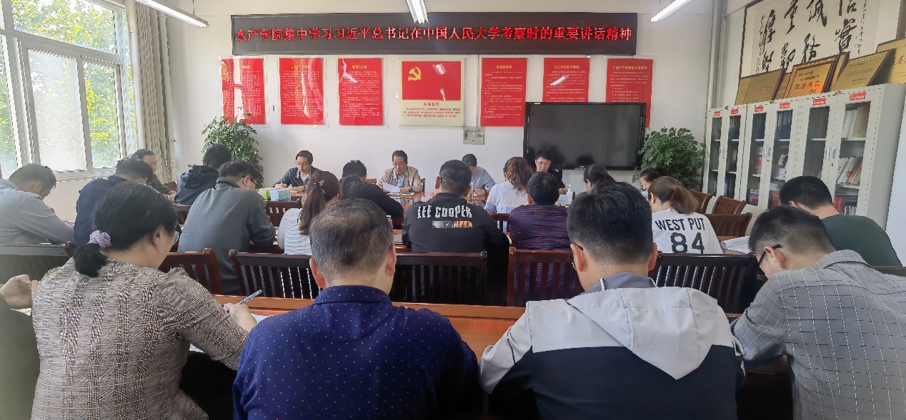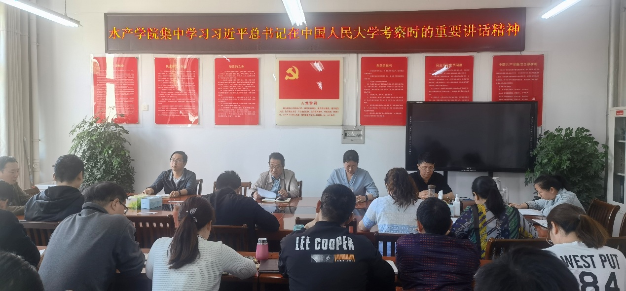 5月3日下午,水产学院在实验楼2C330会议室召开教职工政治理论学习会,集中学习习近平总书记在中国人民大学考察时的重要讲话精神。水产学院全体教职工参加了会议。会议由水产学院党总支书记、院长郭旭升主持。