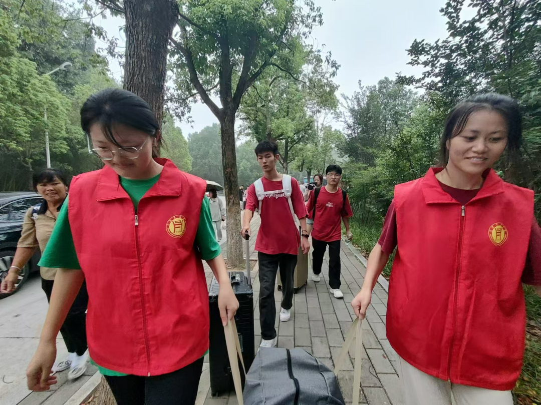 学院志愿服务小队在迎新站点紧密配合,帮助新生搬运行李、辅助办理登记入住手续。在迎新报到处,大家有条不紊,为新生和家长提供全方位“一站式”咨询与帮助,从身份信息核对到校园卡领取、再到新生绿色通道咨询、人脸信息验证,大家通力配合,高效快捷完成新生报到注册。
