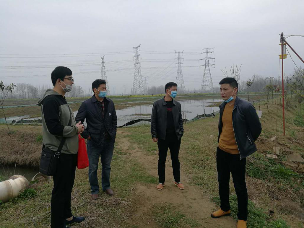 服务团第一站来到潢川县岳湖农业开发有限公司,查看去年示范和推广稻-虾-鳖混养模式中甲鱼养殖情况,建议水温回升后再加强对甲鱼饲料投喂;针对公司养殖模式单一,对企业负责人提出充分利用水域,在6、7月份小龙虾出售后在稻虾池中养殖黄鳝,并提供优质鳝苗的采购途径。