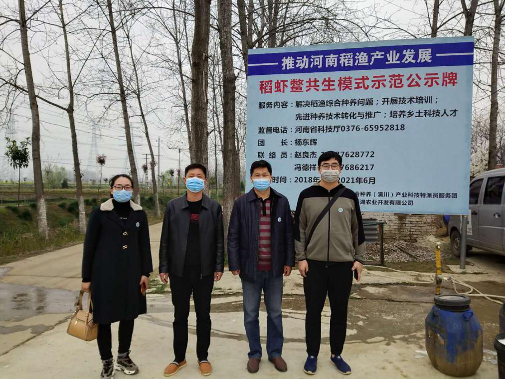 3月22日,河南省稻虾综合种养产业科技特派员服务团团长杨东辉带领成员赵良杰和雷宇杰一行到潢川县开展稻虾综合种养科技服务。