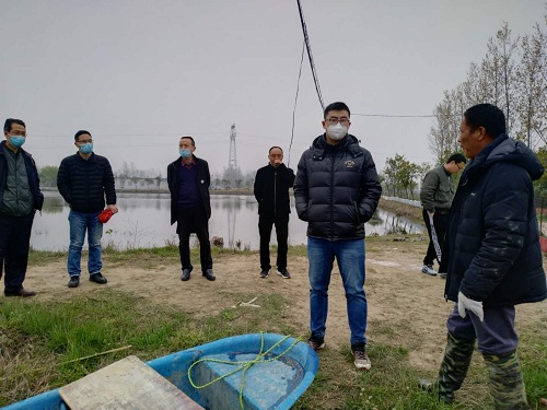 在明隆农业开发有限公司,服务队实地查看了小龙虾苗种的生长情况,询问了目前小龙虾的销售情况,对小龙虾春季肥水、五月瘟疫预防等给予了建议,并针对其在疫情滞销情况下,小龙虾销售模式和养殖模式选择进行了指导。