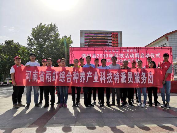 5月19日至20日,受潢川县工信局邀请,河南省稻虾综合种养产业科技特派员服务团成员郭旭升、周本翔、叶兆伟、赵良杰、雷宇杰及水产学院部分学生一行17人赴潢川参加潢川县2019年科技活动周启动仪式暨科技型企业风采展。