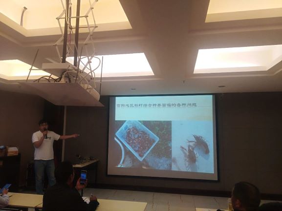 5月19日,服务团一行先来到华来时代农牧科技有限公司小龙虾交易中心和华来时代稻虾综合种养基地,就目前小龙虾苗种的交易情况和稻虾基地插秧情况做了了解和交流,并赠送了水产养殖水质测试试剂盒1箱。