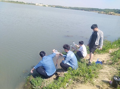 2019年5月23日,水产学院郭旭升教授、吴坤杰副教授、林伟副教授和赵良杰博士赴出山店水库开展蓄水前的采样调查工作。