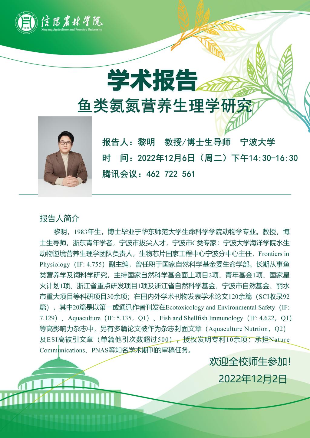 上一条:水产学术报告(十)——舟山贻贝养殖现... 下一条:水产学院开展期末实验室安全检查工作