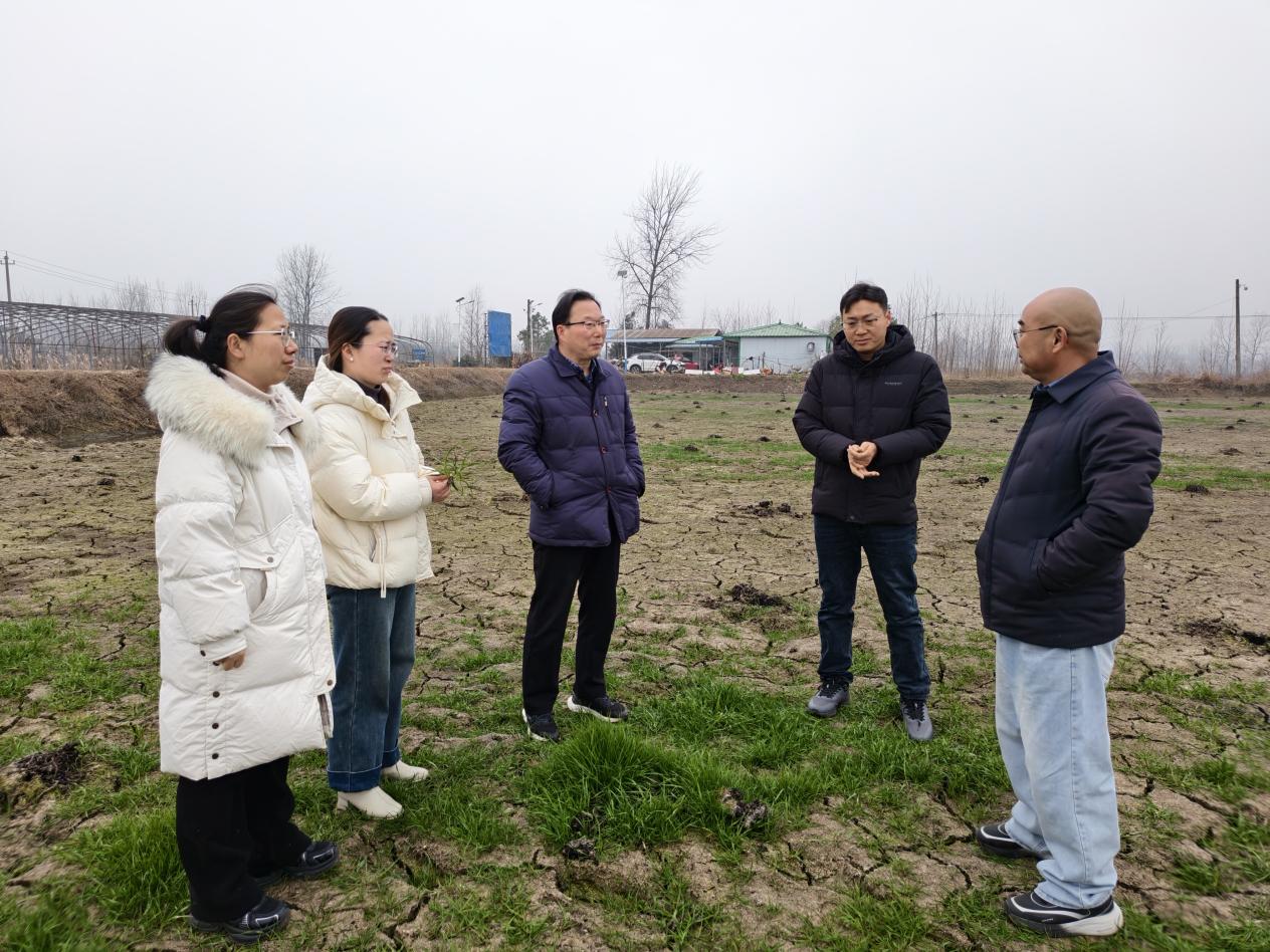 17日上午,服务队抵达“科技副总”唐永涛对接服务的光山县砖桥镇昌盛农业专业合作社。该合作社拥有稻渔综合养殖面积1066亩,池塘精养面积290亩。针对已收割完毕的稻虾田,唐永涛与合作社负责人陈勇谋深入交流,重点了解田间黑麦草的生长管理情况及2025年夏季罗氏沼虾养殖情况。他指出:“冬季种植黑麦草,不仅能有效净化水质、稳固塘埂,其茂盛植株还可为虾苗提供栖息庇护,提高虾苗存活率;来年春季,鲜草更是优质天然饵料,能显著降低饲料成本。”唐永涛建议根据黑麦草长势适时追肥、做好水草管护,确保水草旺盛生长,并确保其覆盖面占田块总面积的40%-60%,最大化发挥其生态与营养双重价值,构建"草-虾-田"绿色高效生态系统。