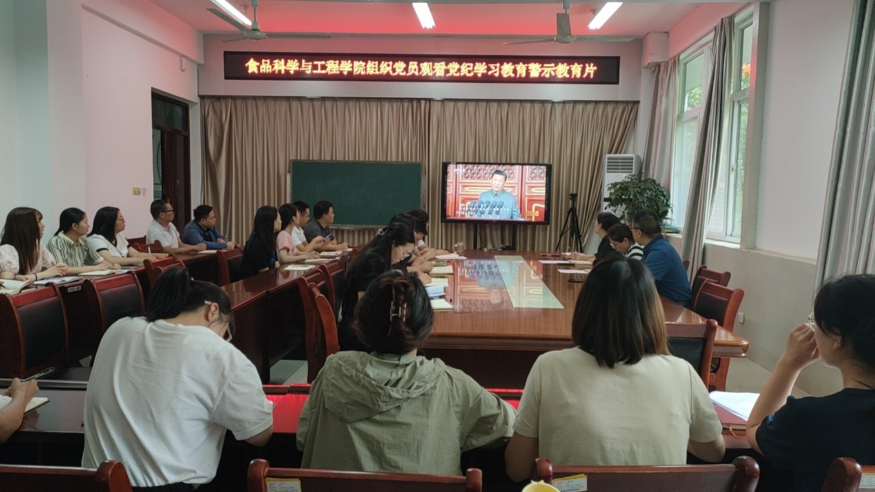 为扎实开展党纪学习教育,进一步增强党员干部廉洁自律意识,强化警示教育,筑牢拒腐防变的思想防线,6月18日下午,食品科学与工程学院党总支组织全体教职工党员集中观看了党纪学习教育警示教育片《零容忍》第一集《不负十四亿》。