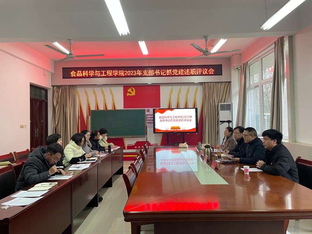 1月18日下午,食品科学与工程学院党总支在科技楼1B206会议室召开党支部书记抓党建述职评议会议。院党总支书记李海祺主持并作总结讲话,院长李建芳、各党支部书记以及党员代表参加会议。会议特别邀请药学院党总支书记魏宗烽、校长办公室副主任刘涛参加评议。