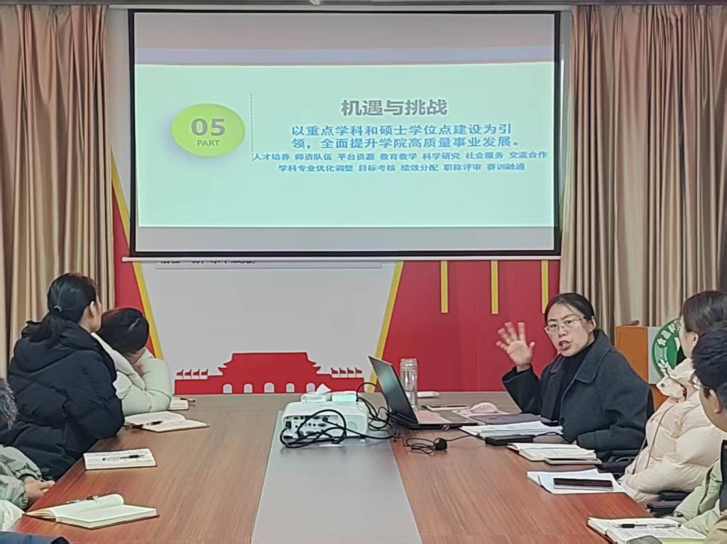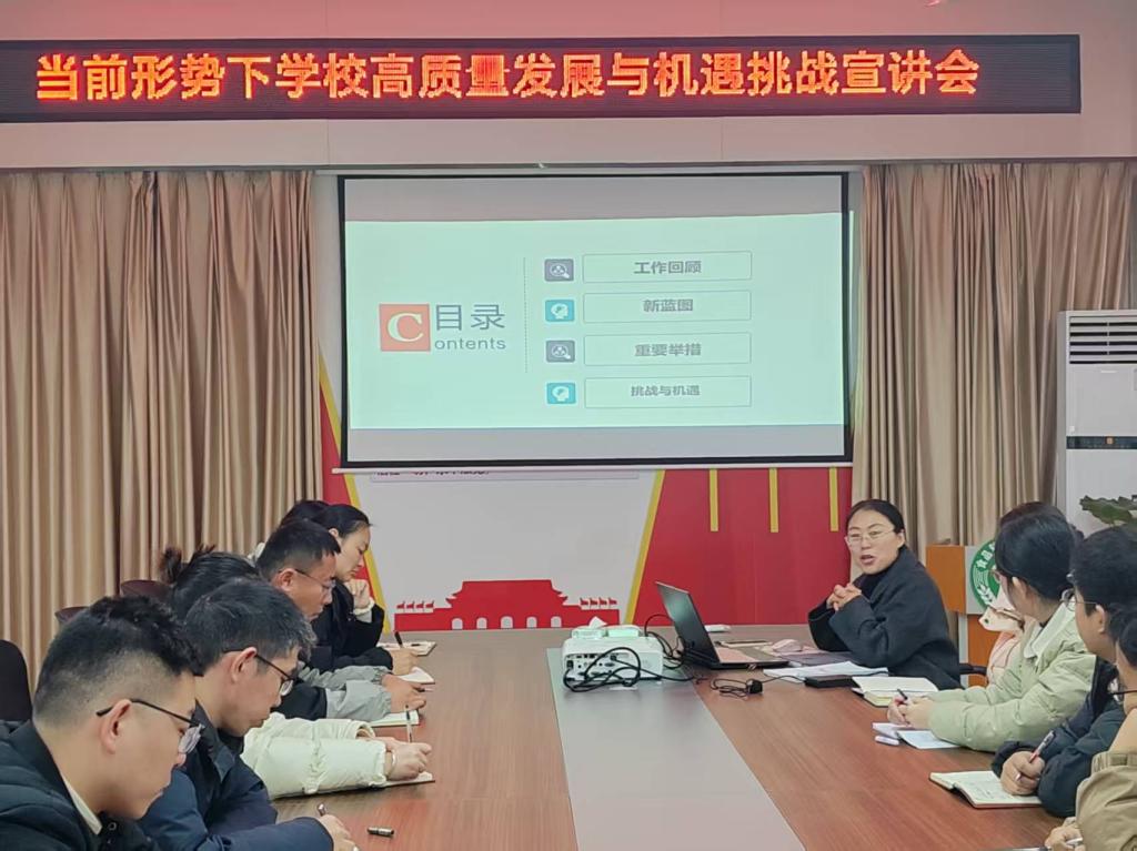 12月23日,食品科学与工程学院在206会议室举办“当前形势下学校高质量发展与机遇挑战”专题宣讲会。帮助近三年新进教师精准把握当前教育发展形势,明晰学校高质量发展战略部署,找准个人成长与学科建设、学校、学院发展的结合点。学院院长李建芳担任主讲人,近三年新进教师参加此次宣讲。