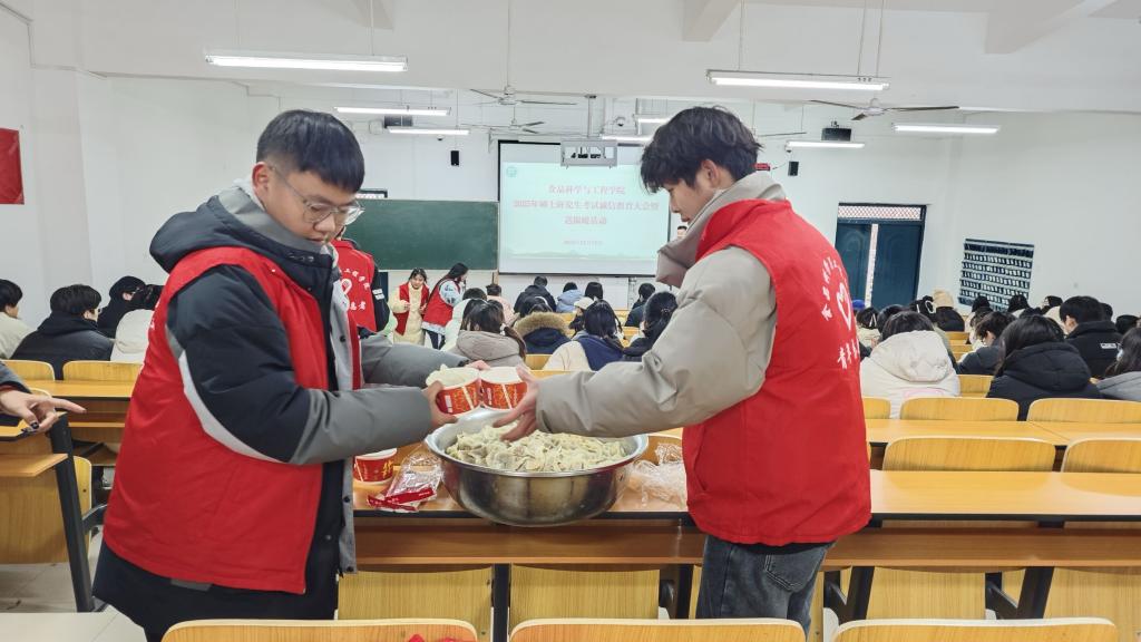 通过此次活动使考研学子在紧张的复习备考中添加能量“补给”,展现了食品科学与工程学院师生积极向上的精神风貌和团结友爱的良好氛围。