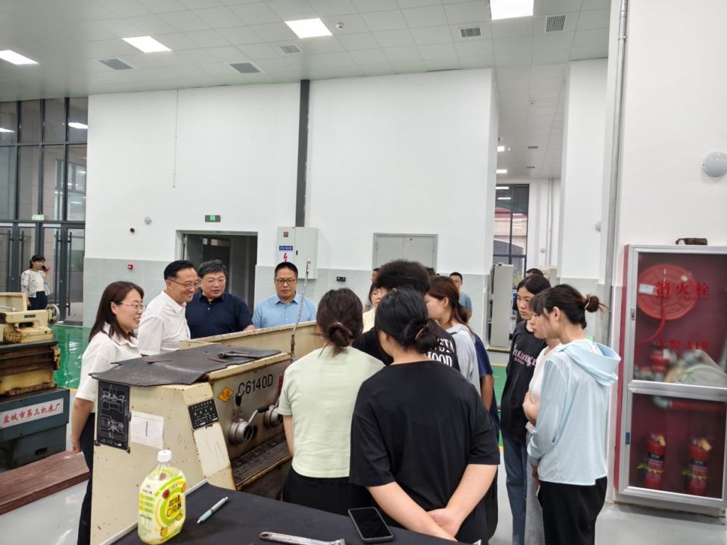 5月26日上午,副校长李益民到信阳技师学院工程训练中心看望beat365在线平台官网金工实习学生,食品科学与工程学院党总支书记李海祺、院长李建芳、副院长朱静和专业教师等参与活动。