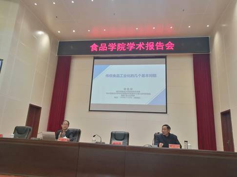 12月5日下午,食品学院邀请哈尔滨商业大学杨铭铎教授来校指导工作,并在图书馆六楼报告厅作了一场《传统食品工业化的几个基本问题》专题学术报告。学院党总支书记夏新奎、院长邢淑婕、副院长邵颖、部分专业教师及2018级、2019级食品科学与工程、食品质量与安全专业学生参加了该报告会。会议由党总支书记夏新奎主持。