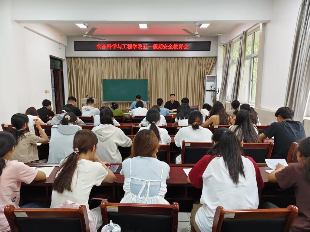 4月29日,为增强学生的安全防范意识,确保五一假期学生安全,食品科学与工程学院召开了五一假期安全工作会议。院党委书记李海祺、各班级辅导员及主要学生干部参加。会议由院党委副书记严兆洋主持。