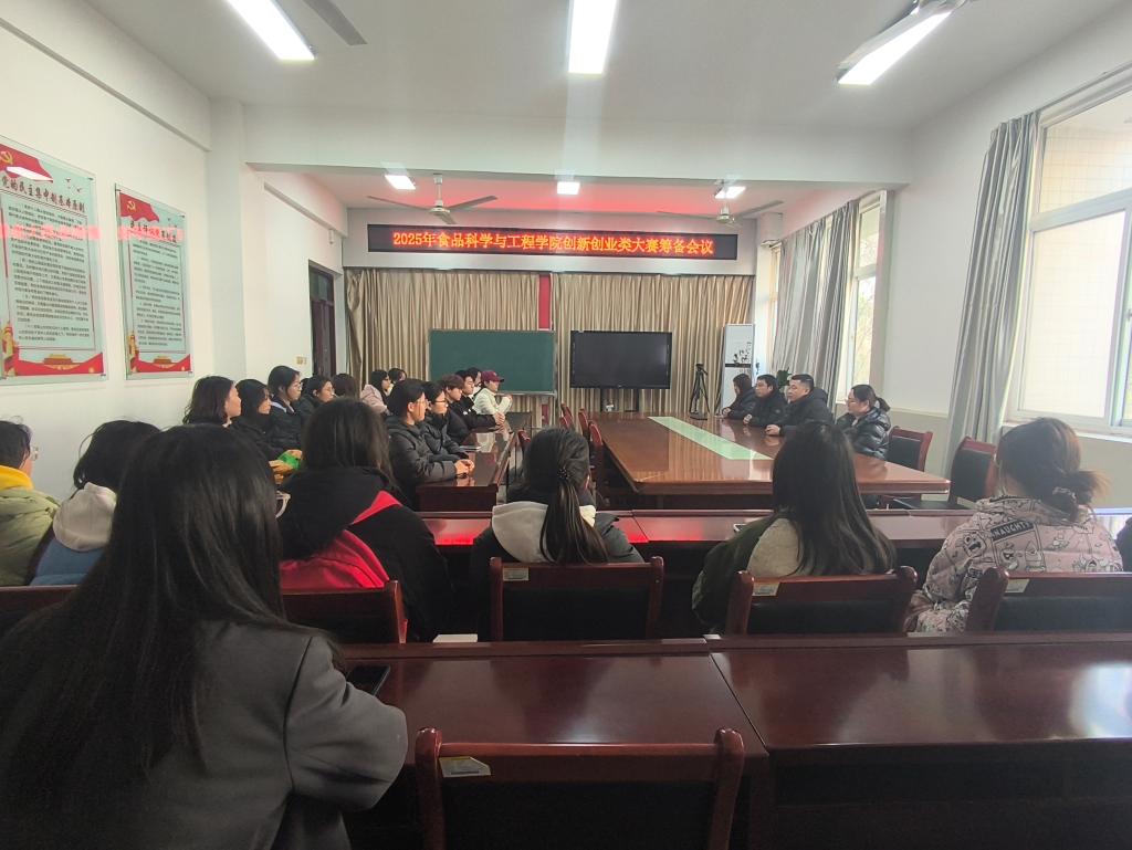 为做好2025年创新创业类大赛项目培育,进一步提升学生参赛水平,1月6日,食品科学与工程学院召开2025年创新创业类大赛筹备会议,学院党委副书记严兆洋、专职辅导员柳诚刚、杨婷,及2024级部分学生干部参与此次会议。