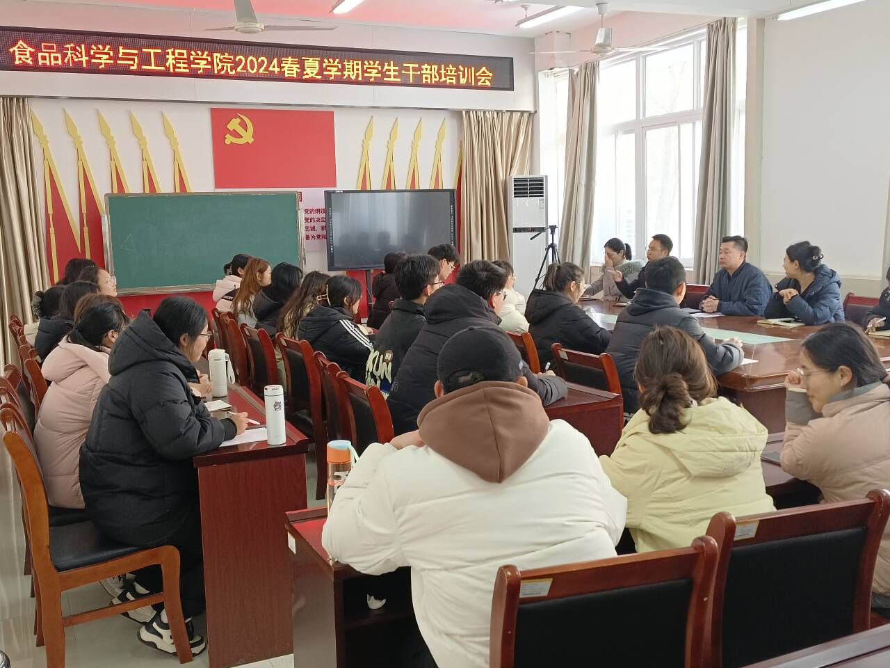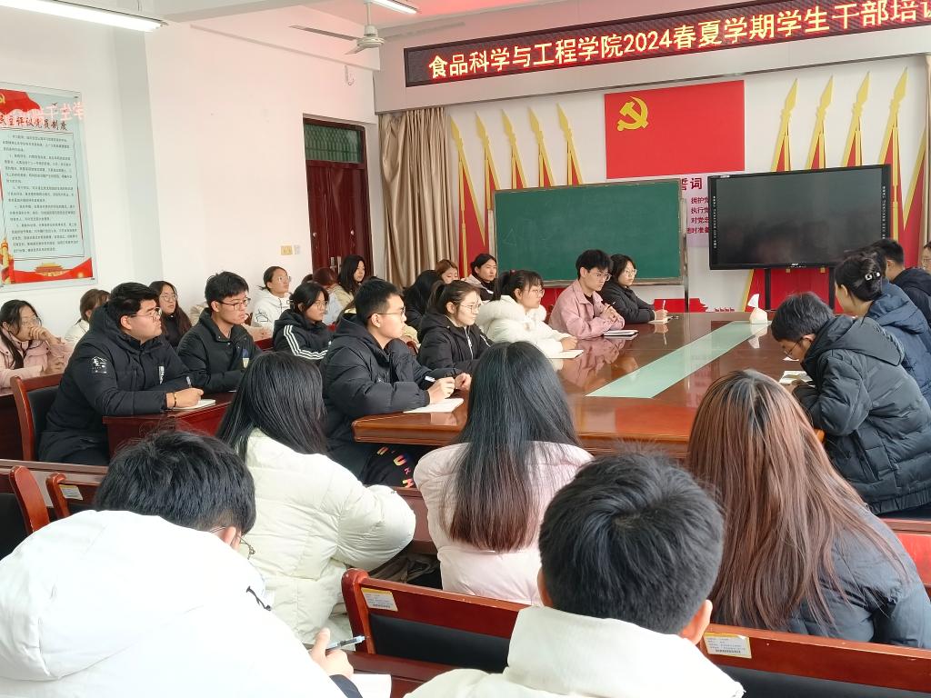 2月27日下午,食品科学与工程学院在1B206召开新学期主要学生干部工作会。食品科学与工程学院党总支副书记严兆洋、团总支书记易蕾、组织员王子伟、专职辅导员黄卉卉、专职辅导员柳诚刚及主要学生干部参加了本次会议。