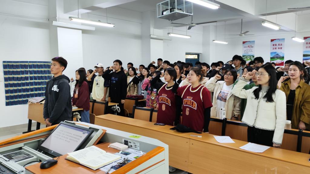 随后,运动员代表张国栋同学带领全体参赛运动员进行了宣誓。