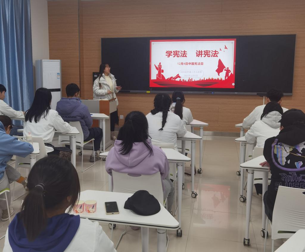 为切实增强当代大学生的法治意识,弘扬宪法精神,营造校园良好的法治氛围。2021年11月30日-12月2日,食品学院各班级辅导员陆续开展了学习宪法精神主题班会。
