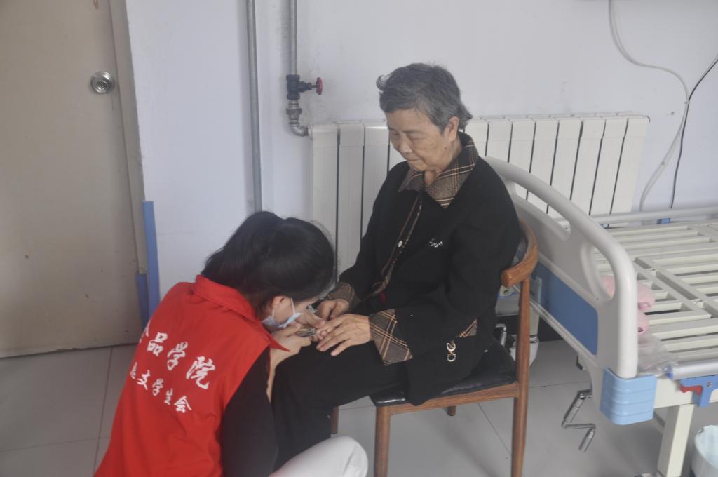 食品学院师生们带着慰问品前往养老院,食品学院党总支书记夏新奎与养老院院长进行谈话,了解该院的管理状况并商量今后的定期志愿服务活动,随之举行了大学生社会实践基地挂牌仪式。仪式完成后,志愿者陪伴老人们聊天谈心,认真询问他们的近况,倾听他们的讲述,现场气氛十分温馨。接着,志愿者们为养老院打扫卫生,为老人们整理被褥,老人们表达了他们的感谢之情。活动结束后,志愿者们纷纷表示:在这里体会了志愿者的服务和奉献精神,今后会在周末时间多多探望老人们。