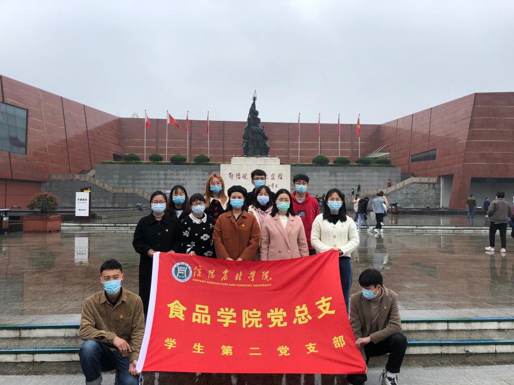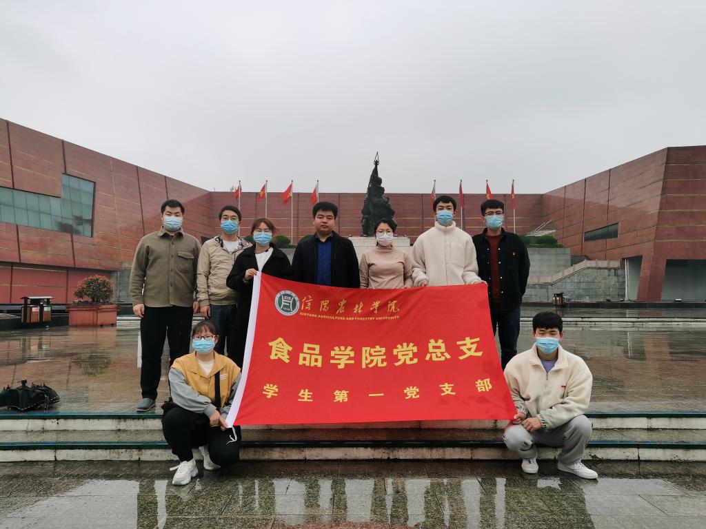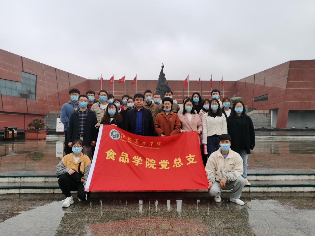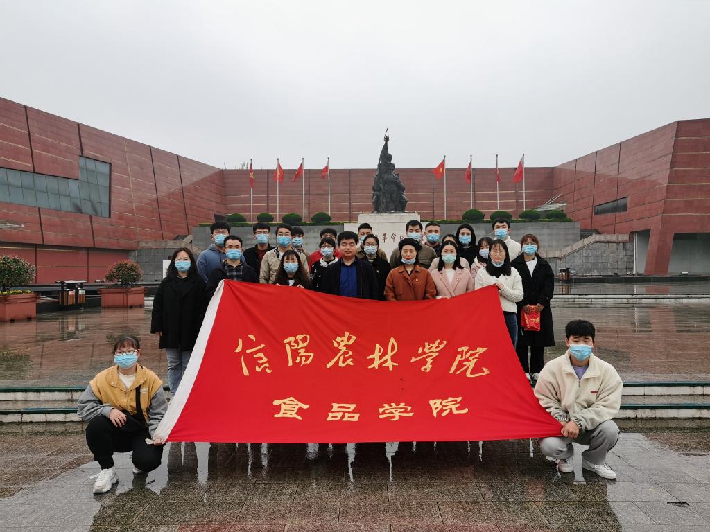 清明节前,为加强大学生对革命先烈的怀念和进行党史学习教育,4月2日上午,食品学院党总支前往信阳鄂豫皖革命纪念馆举行“清明祭英烈”活动,党总支副书记刘涛、团总支书记易蕾、专职辅导员黄卉卉、柳诚刚、教师代表刘海波、付文军及部分学生党员参与此次活动。