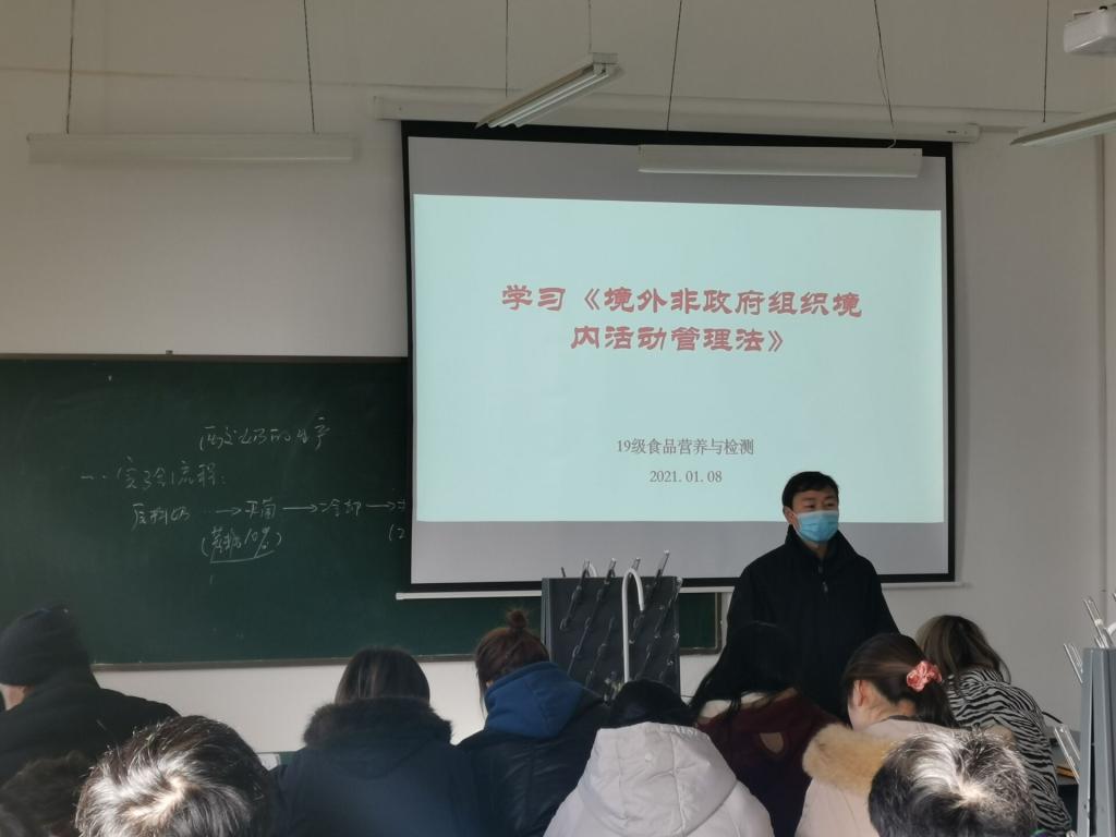 为做好假期防疫等安全工作,同时做好《境外非政府组织境内活动管理法》、《反恐怖主义法》和相关政策的宣讲。2020年1月7日至2020年1月8日,我院各班在辅导员老师的带领下召开了假期安全教育主题班会。