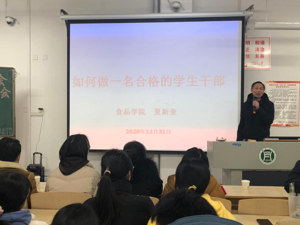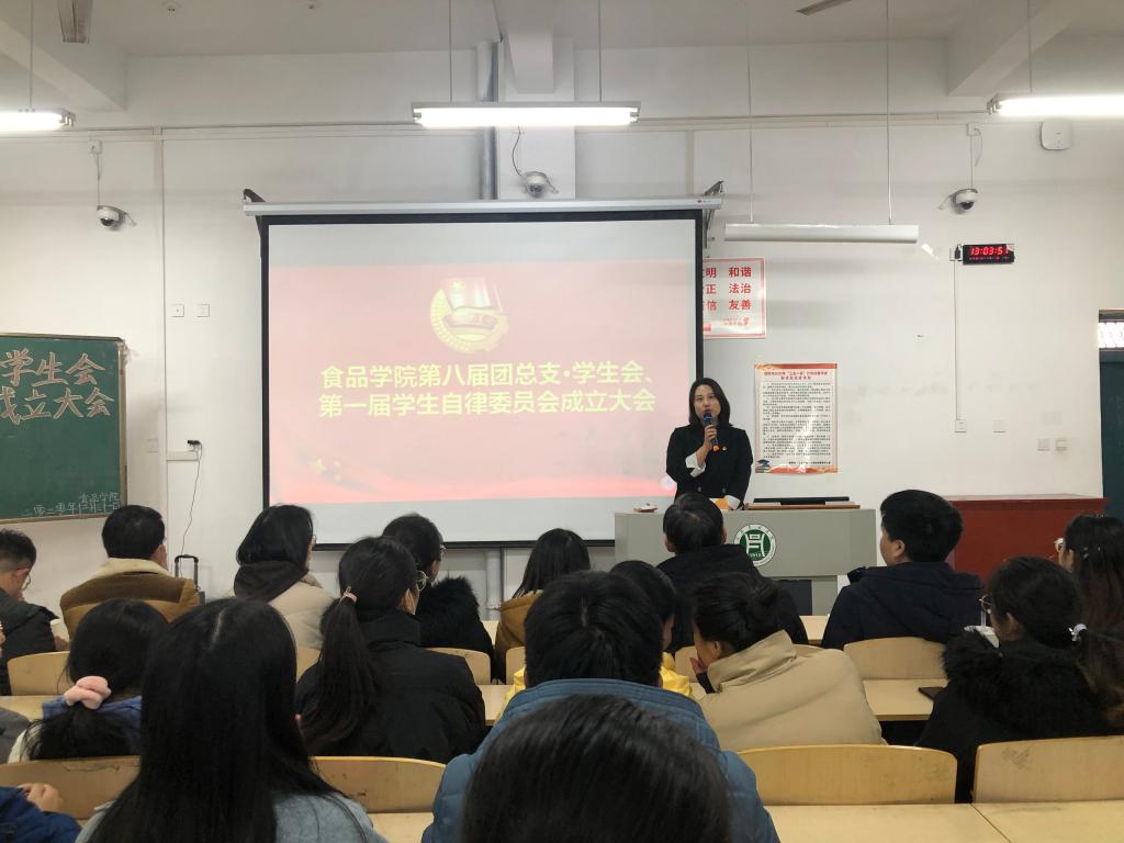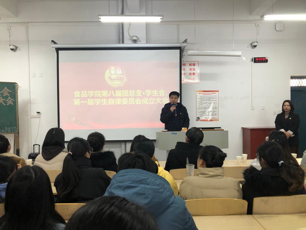 2020年12月31日,食品学院在二教304举行了第八届团总支·学生会成立及第一届学生自律委员会成立大会。食品学院党总支书记夏新奎、副书记刘涛、团总支书记易蕾、组织员王子伟、全体辅导员、第八届团总支•学生会及第一届学生自律委员会学生干部及部分学生代表参加了成立大会。