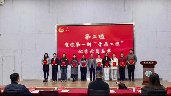 开班仪式在庄严的国歌声中拉开帷幕。杨林宣读了学院第一期“青马工程”优秀学员名单,并颁发荣誉证书,对学员们在培训期间的表现与成长给予了充分肯定。第一期优秀学员代表靳雅琪分享了学习心得与培训收获,展示了“青马工程”在青年思想引领和能力提升方面的显著成效。