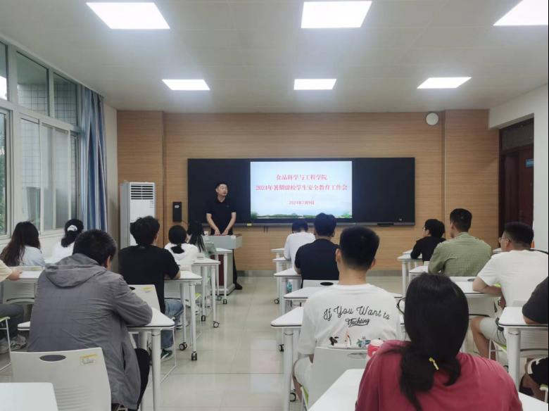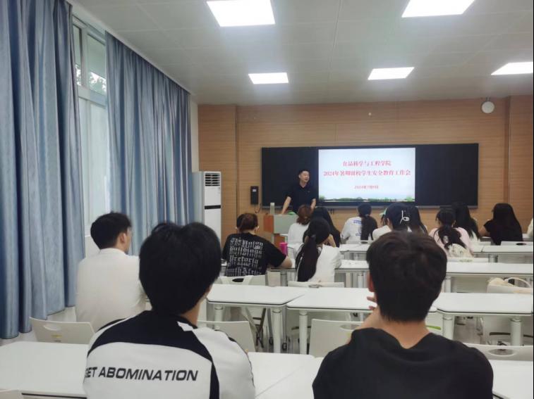 为进一步加强暑期留校学生的安全教育和管理服务工作,筑牢留校学生的安全屏障,7月9日上午,食品科学与工程学院在智慧教室1B304、1B401、1A401分别召开2024年暑期留校学生安全教育工作会议,会议由学院党总支副书记严兆洋主持,相关辅导员及暑期留校学生参加。
