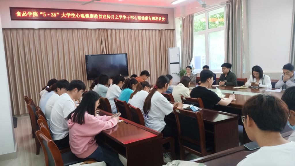 为进一步提升学生干部心理健康素质与水平,充分发挥学生干部在心理健康教育工作中的积极作用,5月3日,食品学院在实验楼1B206召开学生干部心理健康专题培训会。