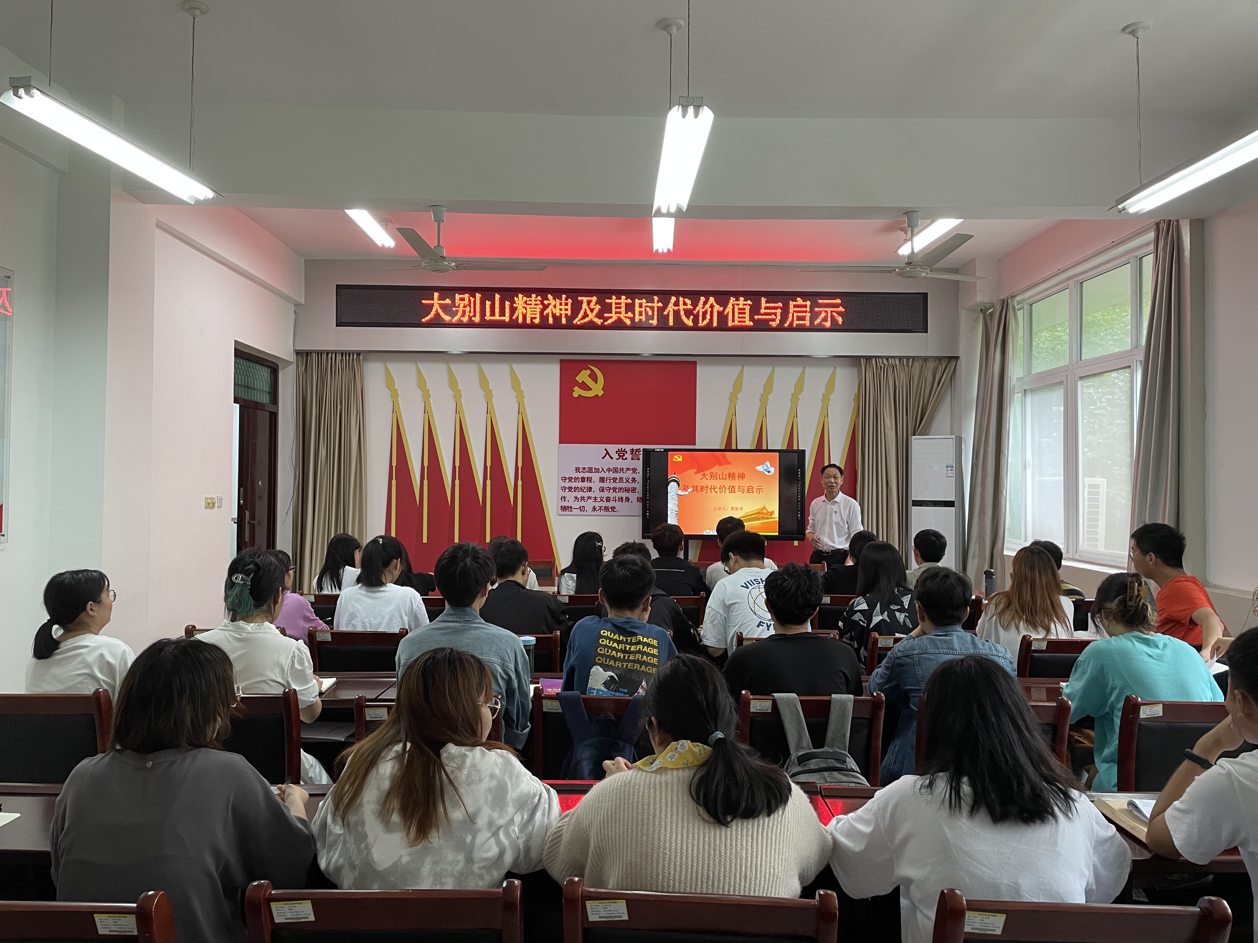 夏书记以《大别山精神及其时代价值与启示》为题,围绕“大别山精神的形成”“大别山精神及其内涵”“大别山精神的当代价值及启示”,详细的介绍了大别山28年“红旗不倒”这一中国革命斗争历史上独一无二的奇迹,深入解读大别山精神及其启示。