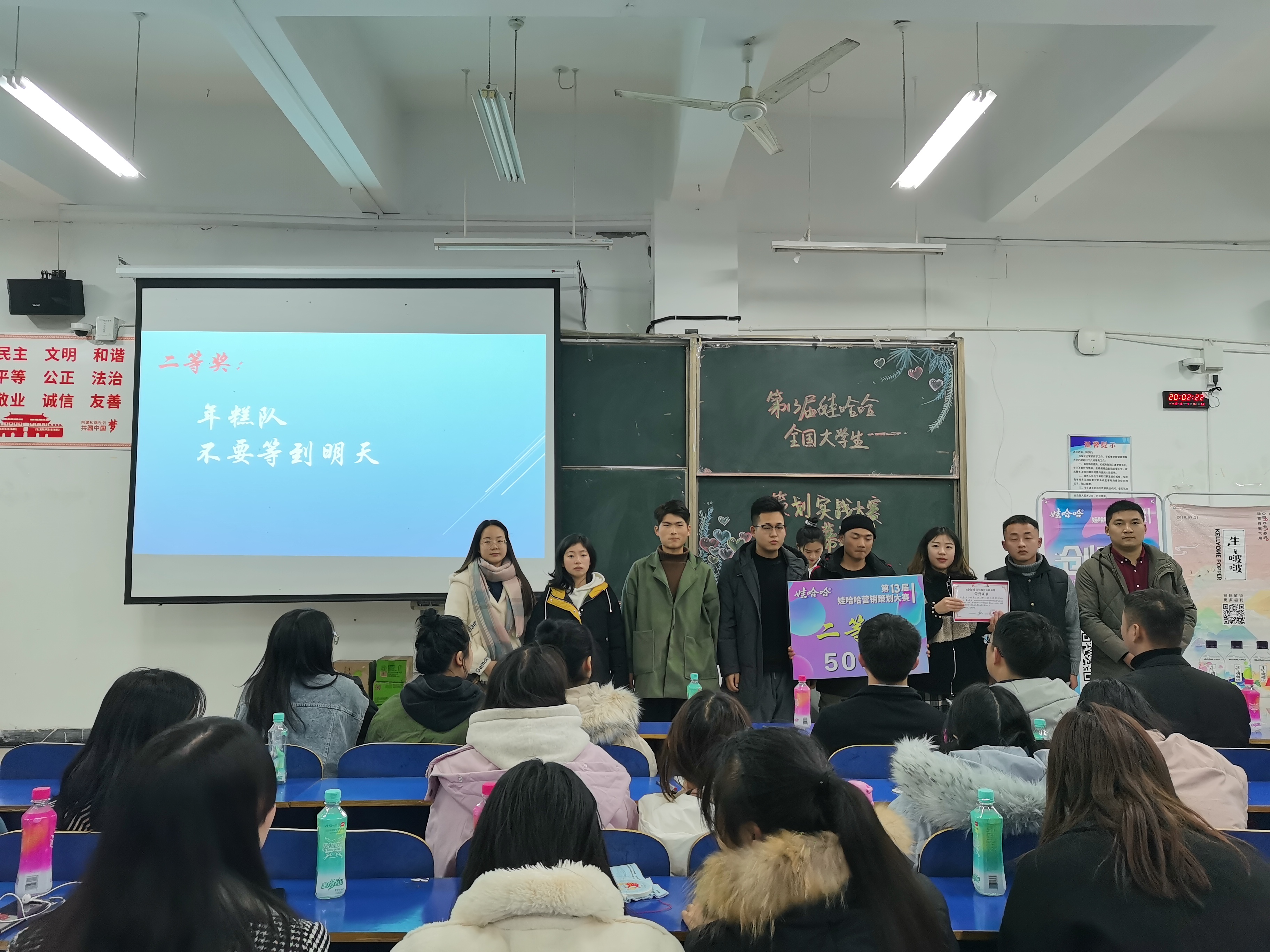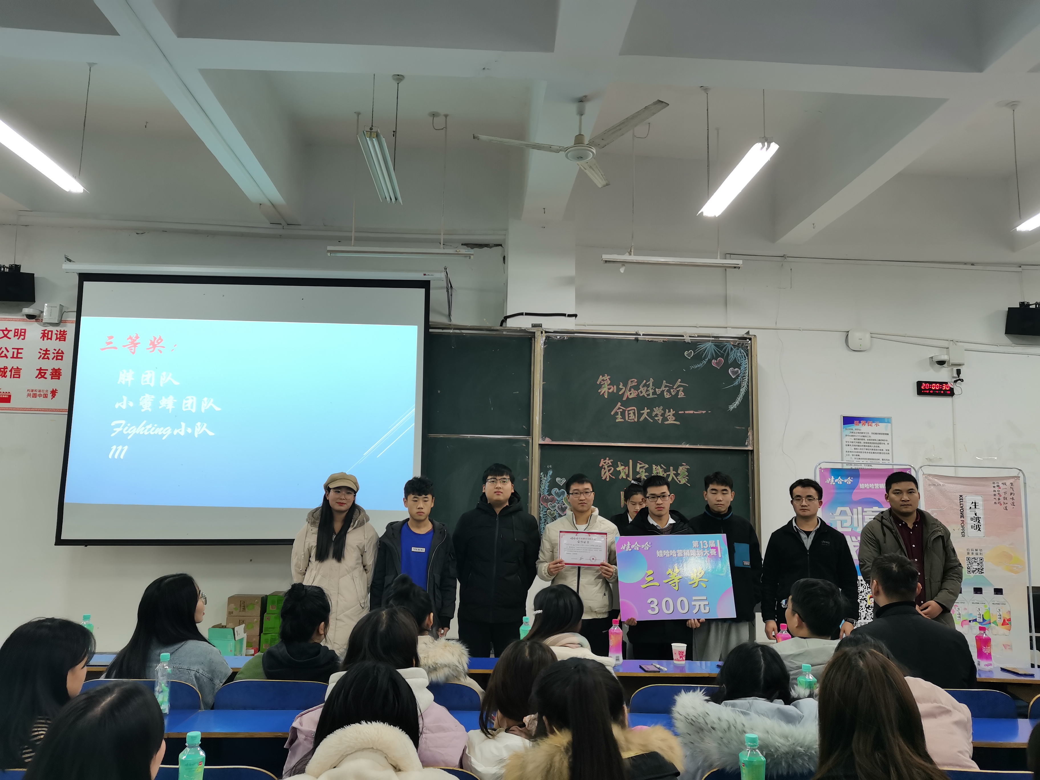 各队伍在此次决赛中,通过ppt介绍成果展示后,评委针对营销策划、抖音人气比拼、实战营销、答辩总结进行提问并打分。最后,经过评委的评分筛选,来自食品学院的必得第一队,年糕队和不要等到明天队三支队伍包揽了本次比赛的前三名,在同学们的掌声中,历时一个月的营销大赛最终落下帷幕。