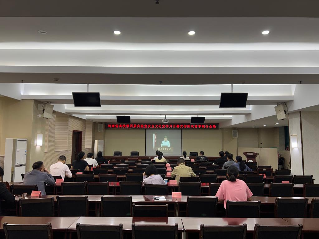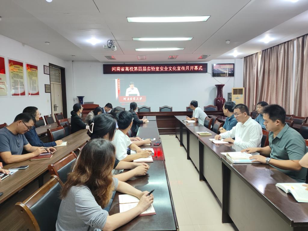 此次活动的主题是“强化分级分类管理,提高师生安全技能”。开幕仪式上在线观看了“河南省高校第四届实验室安全文化宣传月活动开幕式和实验室安全知识讲座”,实验室管理处处长梁其宇出席会议并致词,实验室管理处副处长罗婧主持会议。实验室管理处、中心实验室以及二级教学科研单位主管副院长等参加开幕仪式,各学院设分会场,二级教学科研单位实验教学中心全体成员、实验室负责人和学生代表参会。