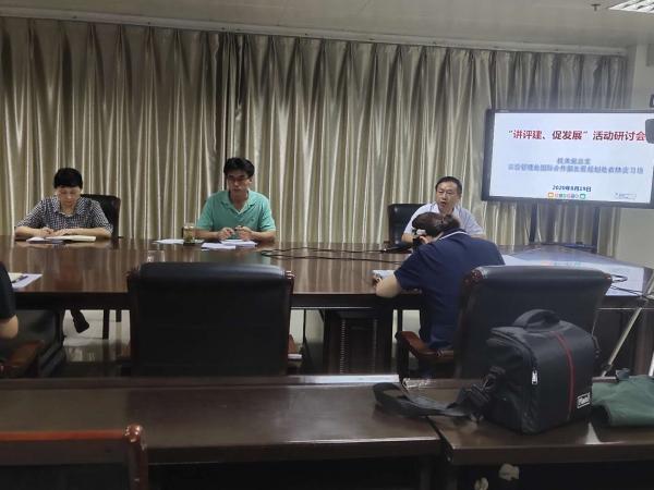 根据学校本科教学合格评估“六讲”活动要求,8月19日上午,机关党总支实验设备管理处、国际交流与合作部、发展规划处、农林实习场党支部全体成员在行政楼第二会议室开展了“讲评建 促发展”活动研讨会,会议由国际交流与合作部主任黄丽主持。会议邀请副校长赵一鹏作现场指导。