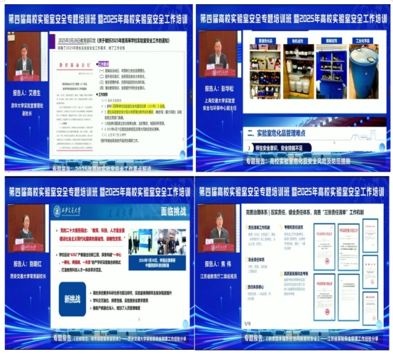 培训期间,有关领导和专家就高校实验室安全有关政策、基础理论、管理实践等内容进行了深入的报告交流。清华大学艾德生对“2025年高校实验室安全工作要点”进行了权威解读,明确了年度重点任务;上海交通大学彭华松聚焦危化品管理,分析了风险隐患并提出防范对策;西安交通大学别朝红以“五链融合”为主题,分享了该校通过机制创新筑牢安全防线的实践经验;江苏省教育厅焦伟从制度设计角度,分析了协同联动对夯实安全基础的关键作用。