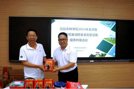 随后,梁其宇处长和李海祺书记共同完成了消防安全配套设备移交仪式,本次移交的设备包括灭火器、防毒面罩、急救箱等,这些设备将为实验室的安全运行提供有力保障。