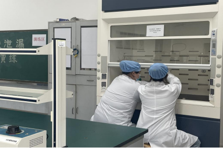 设备移交仪式后,浓盐酸泄漏应急演练正式开始。本次演练选取化学实验常用浓盐酸试剂意外泄漏的情境:学生不小心将一瓶浓盐酸倾倒的应急处置。演练分为三个环节:第一环节,模拟化学药品泄漏、报告并请求救援、紧急自救及安全疏散。第二环节,模拟应急救援人员到达现场,评估现场情况,提出处置方案。第三环节,模拟应急救援人员在确保自身安全的情况下进行现场处置。演练过程中食品科技与工程学院应急处置工作组成员配合默契,整个演练组织有序、运行顺畅。演练过程中,食品科技与工程学院陈晖老师对急救援人员现场处置重点环节进行了解读,加深师生对应急处置要点的理解。