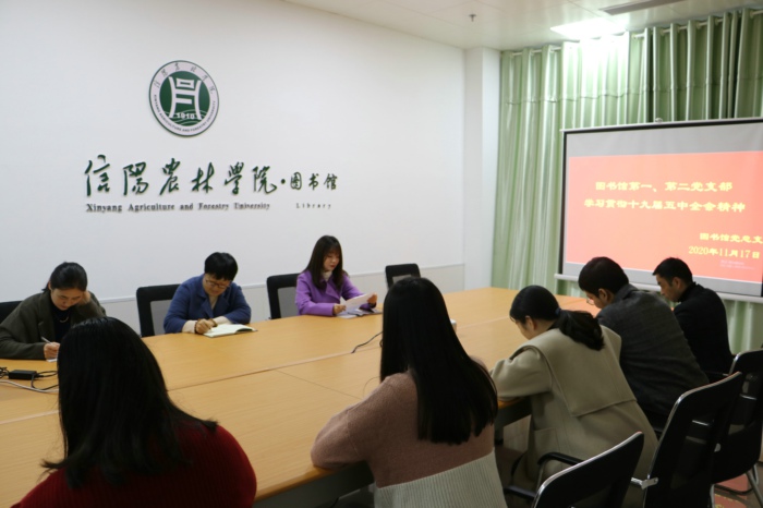 11月17日上午,图书馆第一、二党支部在一楼会议室组织召开十九届五中全会专题学习会,图书馆全体党员参会,会议由图书馆党第一党支部书记张梦瑶主持。