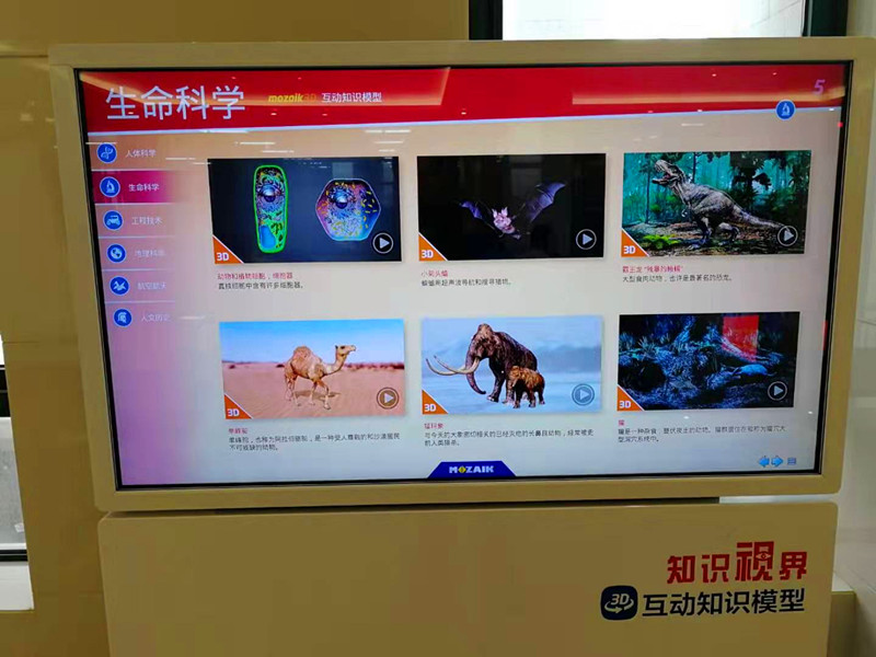 2019年12月6日,图书馆一楼大厅南侧增加了一台新设备——“知识视界·3D互动知识模型”,该模型内容涵盖人体科学、生命科学、工程技术、地理科学、航空航天、人文历史等方面,集3D触摸互动体验为一体,伸手触碰知识。该模型所涵盖的知识具有独特视角、内容新颖、触手可及、可视听等特点,欢迎广大师生来图书馆体验。
