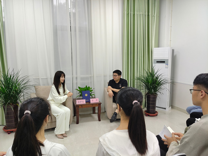 牛冲老师从“诗能带来什么”、“文以载道,诗以养心”“中国新诗脉络”和“如何写好新诗”四个方面阐述了中国传统诗歌创作与人文精神的关系,并结合自身创作经验解读当代新诗,以个人创作延展群体写作,尝试呈现中国传统诗歌创作精神纹理,展现当代诗歌文质。他在现场还同师生分享了创办“元诗歌公益基金”助力高校学生诗歌创作的些许心得体会,引发师生共鸣。在场师生积极互动,分别从文学创作、地域文化、社团发展等方面与牛冲老师进行了对话沟通。