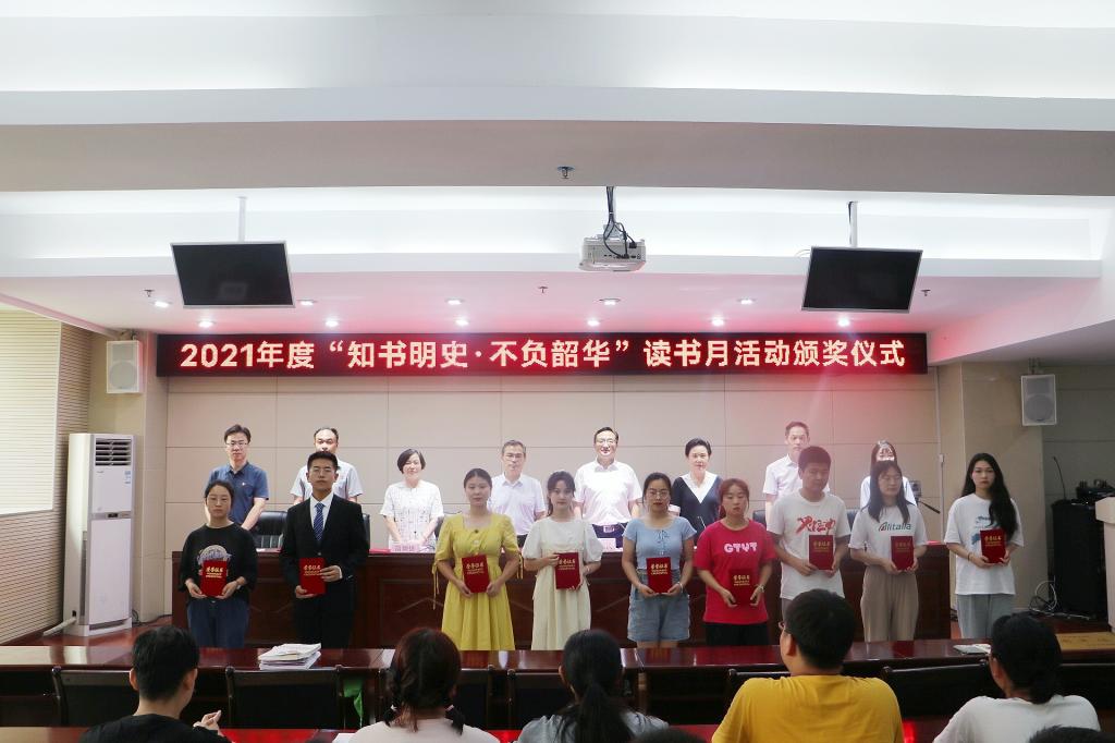 6月29日下午,beat365在线平台官网在行政楼一楼会议室举行2021年度“知书明史·不负韶华”读书月活动颁奖仪式,校党委副书记王庆兵、副校长李益民、校工会、校纪委、学生处、团委、图书馆等部门负责人及获奖师生代表参加活动,颁奖仪式由图书馆馆长李明彦主持。