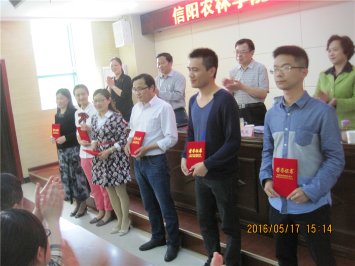 会上,校工会副主席宋建军首先宣读了“关于表彰2016年读书征文活动获奖文章的决定”。接着,学校领导及工会、图书馆、团委负责同志向获得教工团体组织奖的工商管理学院分会、林学院分会、图书馆分会、党群分会和获得学生团体组织奖的茶学院团总支、牧医工程学院团总支授予荣誉匾额,向本次获得征文一、二、三等奖的作者颁发了荣誉证书并进行读书经验交流,征文获奖者王海燕老师、徐玉梅老师、陈颖同学等获奖代表畅谈了读书感悟,师生分享了精彩的阅读心得。表彰会上,图书馆向团委学生捐赠图书100册。